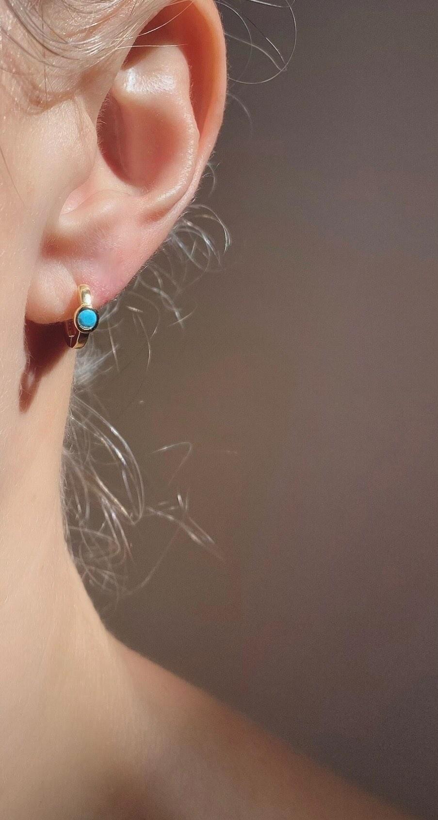 Turquoise Huggies add a fun pop of color to any outfit with their perfect blue and gold combo. Their secure hinge closure makes them great for stacking and providing a versatile accessory for any occasion. Pre-orders for September 15th. Shipping commences September 16th.