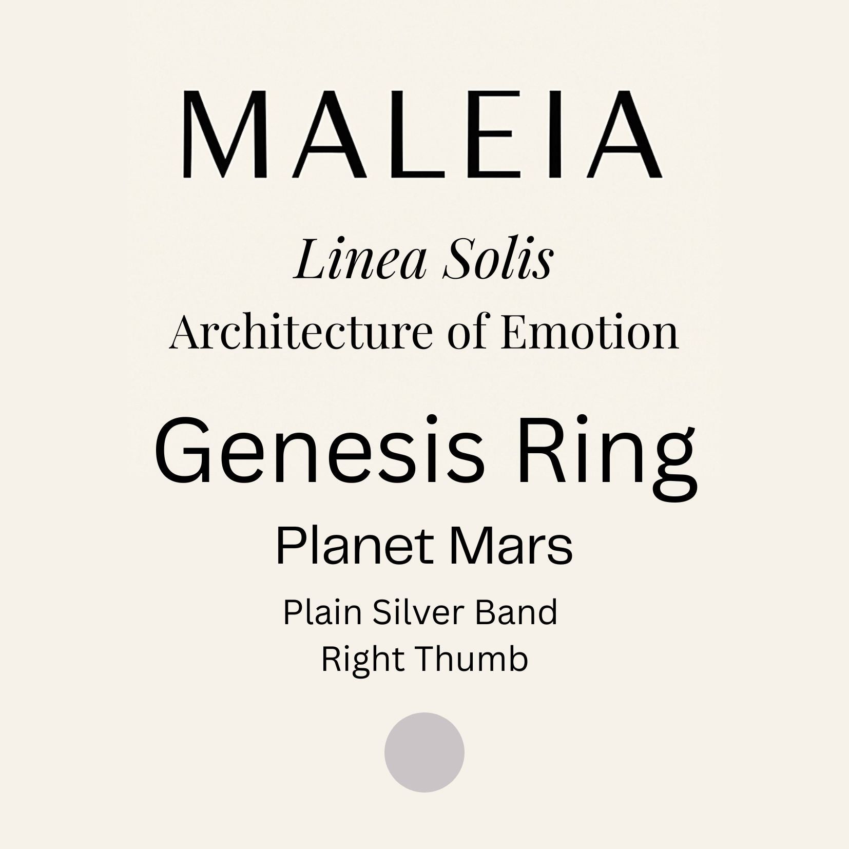 The Genesis Ring in sterling silver is a bold symbol of new beginnings and dynamic energy. Worn on the right thumb, it resonates with the power of Mars, the planet of action, courage, and will.